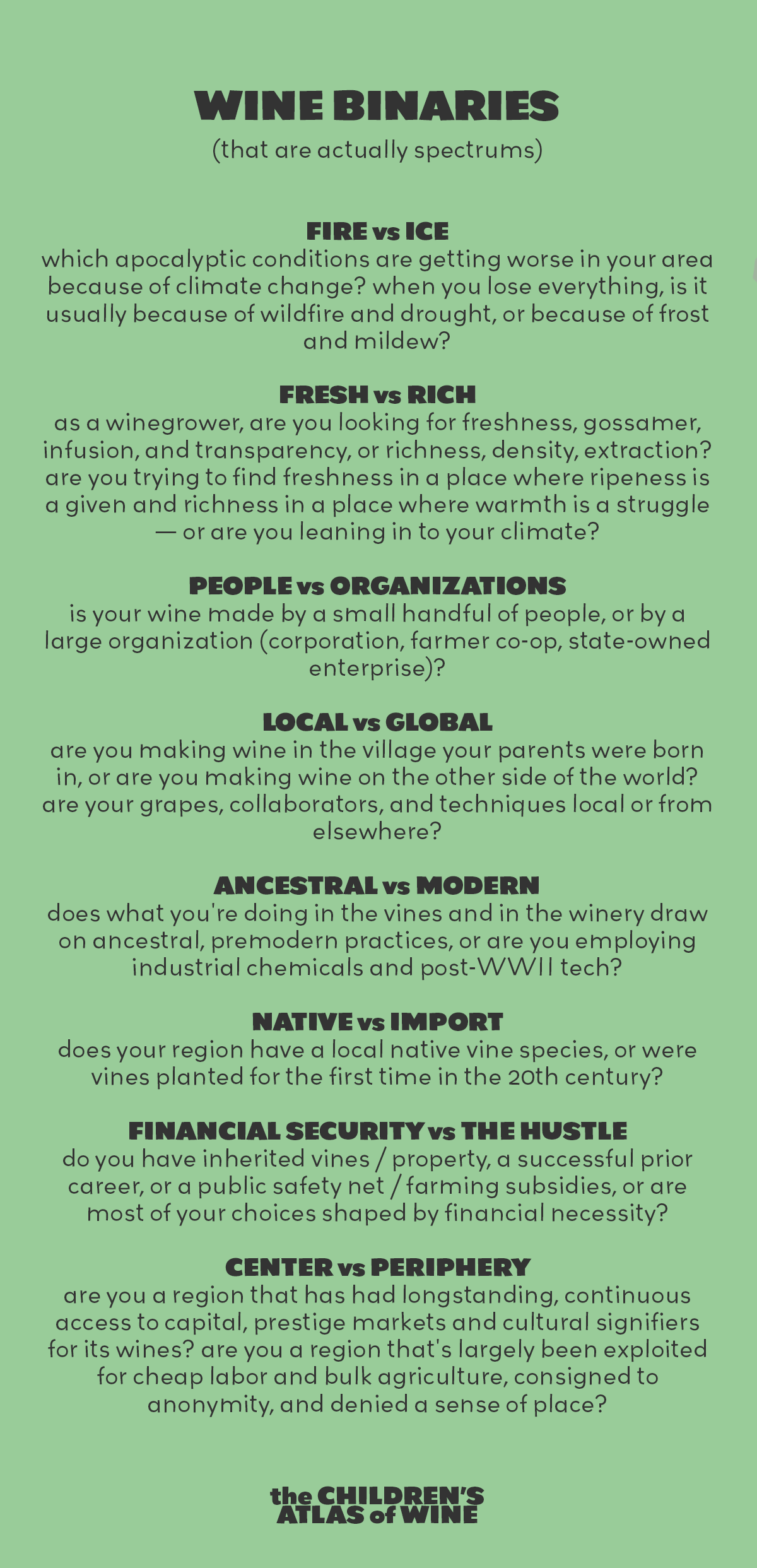 And right now is as good a time as any to say that trying to think through these questions, as a teacher, is what led me towards this project (and away from classic frameworks for wine education) in the first place. How do you account for the way wine is, right now, and put it into context?