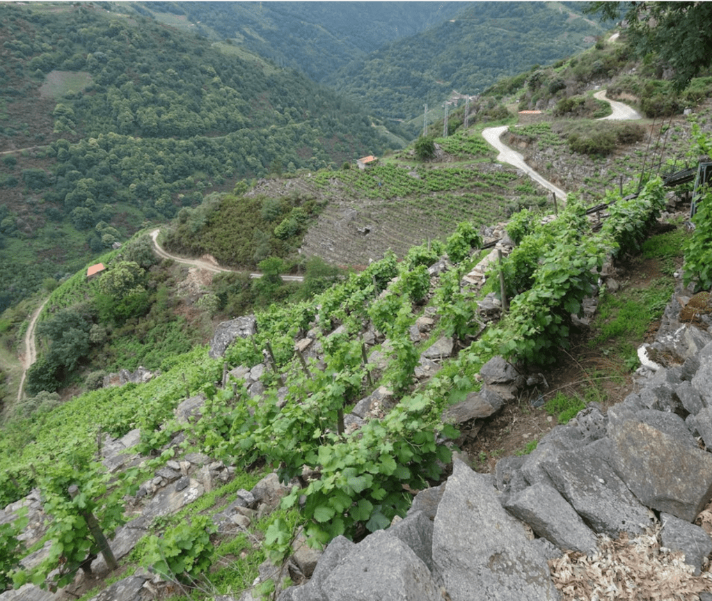 The wine A throwback: a century-old parcel co-planted to red and white varieties, fermented together and bottled without addition or subtraction. (The watercolor labels from Envínate, as opposed to their regular solid-color text ones, are a series of single-parcel ancestral bottlings that they make without any sulfur, a little wilder and less controlled than their usual minimalist approach). The white grapes in this old plot are varieties like godello, treixadura, albariño, and doña blanca. As for the reds, apart from mencía, which has become the main variety grape of Ribeira Sacra over the last two decades of its renaissance as a wine region, you’ve also got rare locals like mouraton and brancellao as well as deeply-colored crosses imported in the early 20th century for bulk production, like alicante bouschet and grand noir de la calmette. The four friends behind Envínate have been working for about a decade longer than the other producers in the shipment — more than enough time to have become emblems of a new wave of terruño-focused Spanish winemaking.